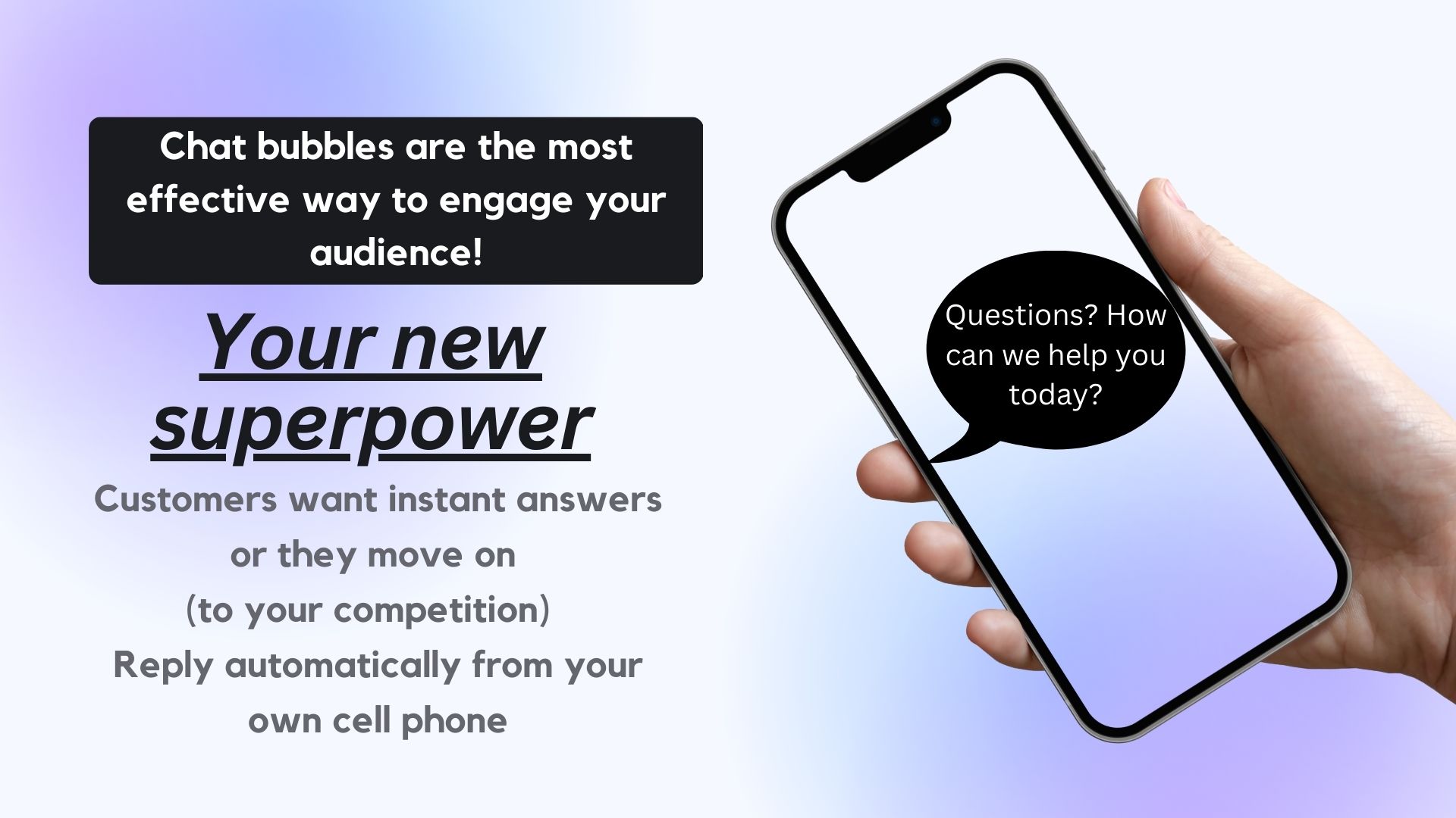 ~Chat bubbles via text have a 95% open rate within 3 minutes. Get notified right on your phone!